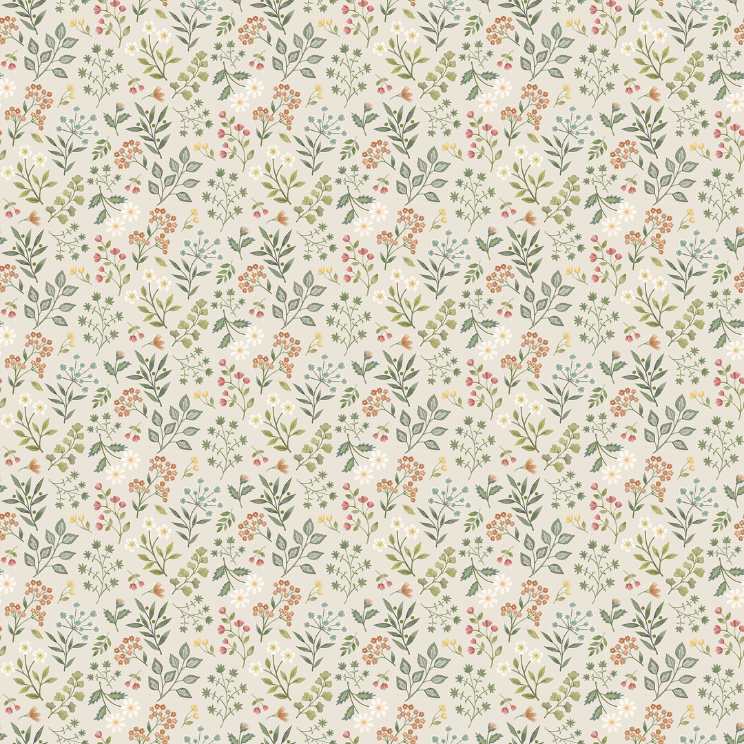 Floral Beige Woodland Heart by Deborah Edwards & Kathryn Christenson | - 44” - (DP28724-12) – Sold in UNITS of ¼ metre