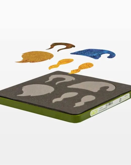 - Quickly and easily cut four of each pre-fused applique shape in one pass thru the cutter (fusible counts as one half layer of fabric).