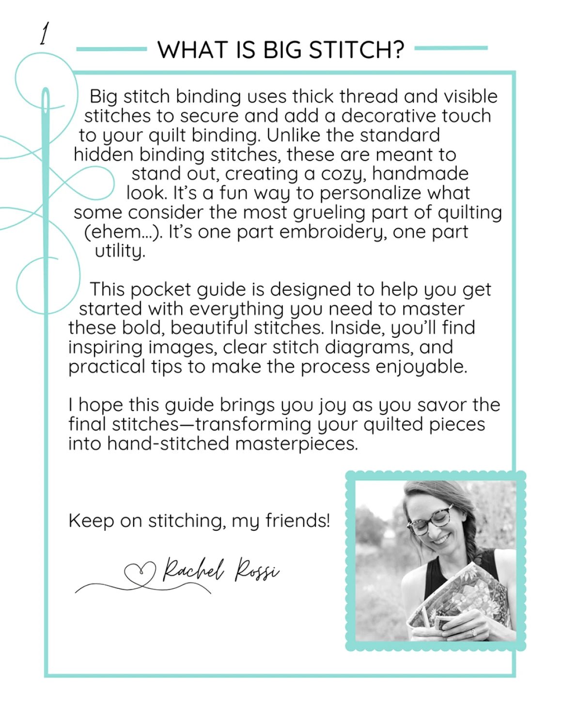 The Little Book of Big Stitch Binding is a compact, portable reference designed to help quilters transform their quilt edges from basic to beautiful.