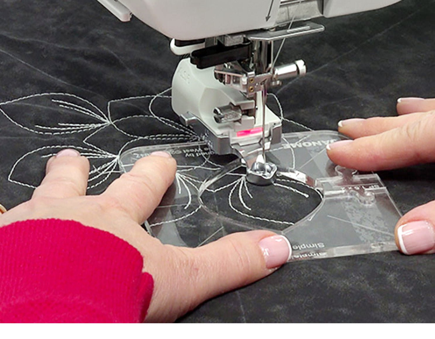 A Janome first! Our new stitch regulation system comes standard with the CM17 and includes four feet; closed-toe, open-toe, clear view, and the exclusive Ruler Work foot so that all of your free-motion needs are covered. With the added benefit of being able to set the sensitivity of the sensor, you can adjust the regulation as your skills build.