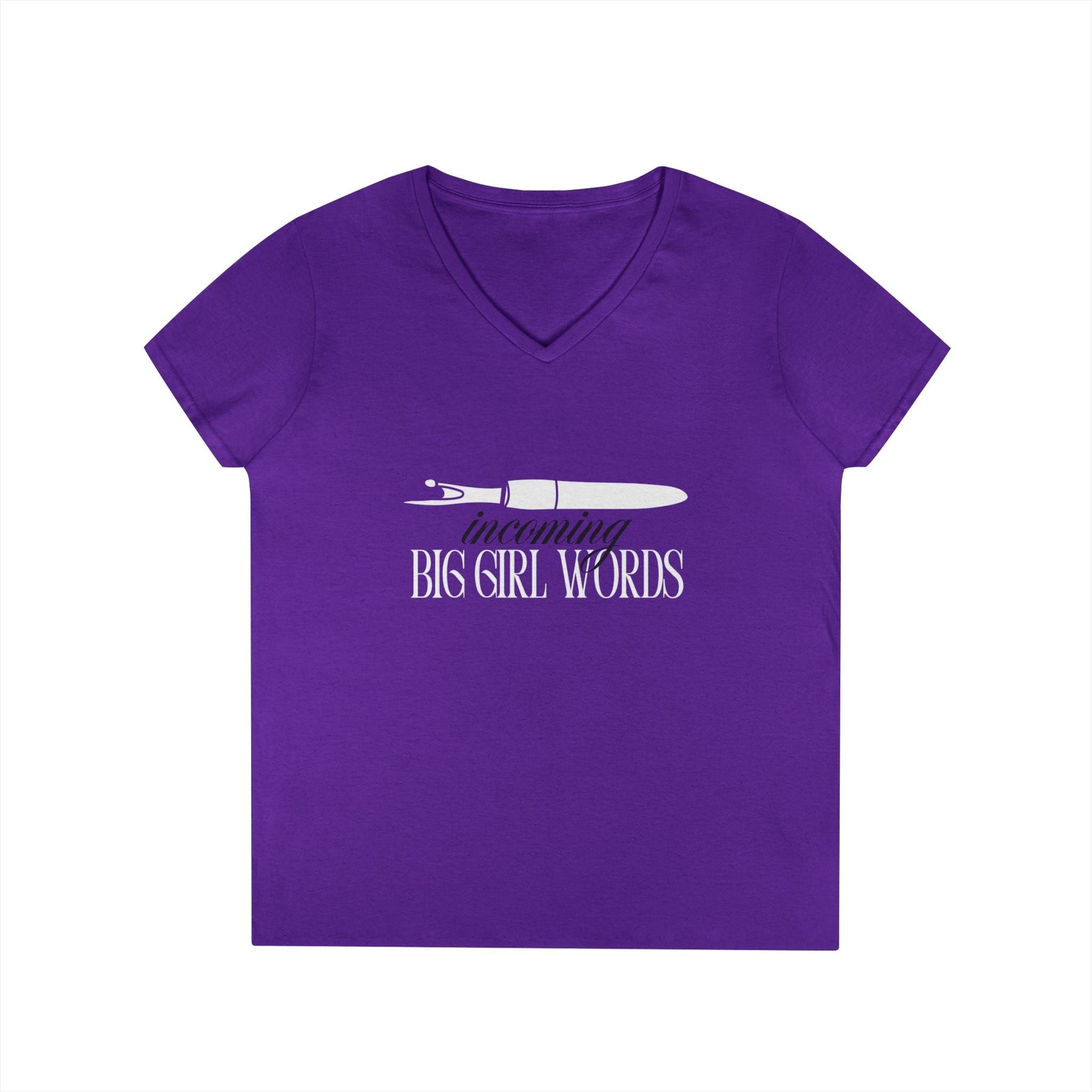 Incoming Big Girl Words Gilden V - neck heavy cotton T-Shirt - Maple Leaf Quilting Company Ltd.