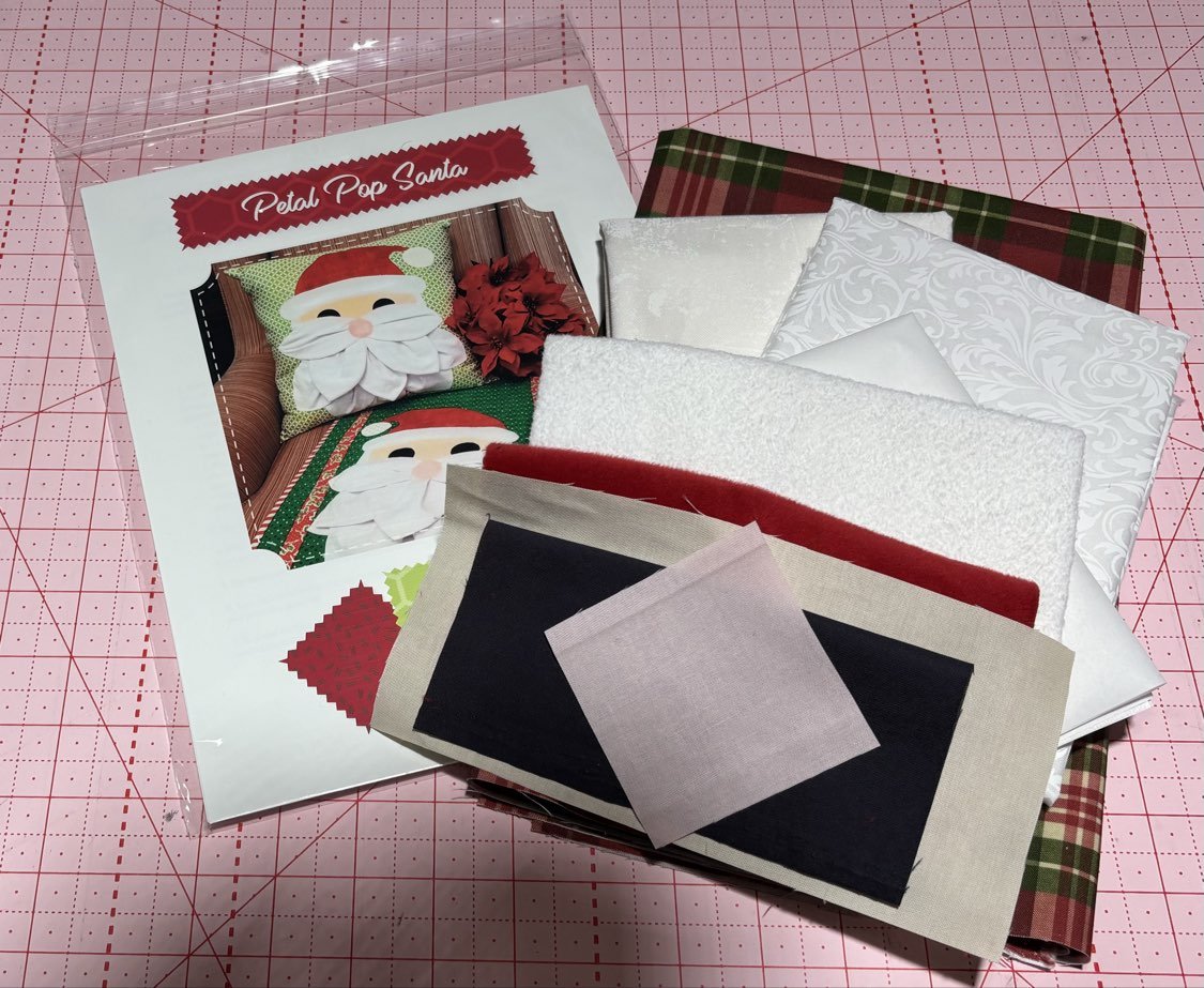 This kit includes the Petal Pop Santa pattern (with instructions for both a pillow and a table runner) plus a reusable paper petal template. Cozy minky fabric for Santa’s hat adds the perfect textured touch.