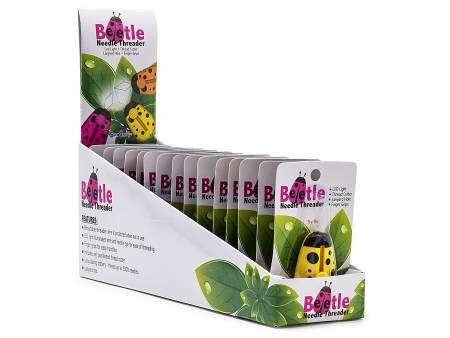 This little cutie is perfect for your sewing and crafting room needs. Needle Beetle LED threader pop- threader is designed to look like a Beetle. Comes in red, yellow, or green body with black spots. Threader has a button slide to bring up the wire threader, an LED light that is activated when you push up the threader eye, a thread cutter on the side, and a place for attaching a Lanyard or cord at the bottom.