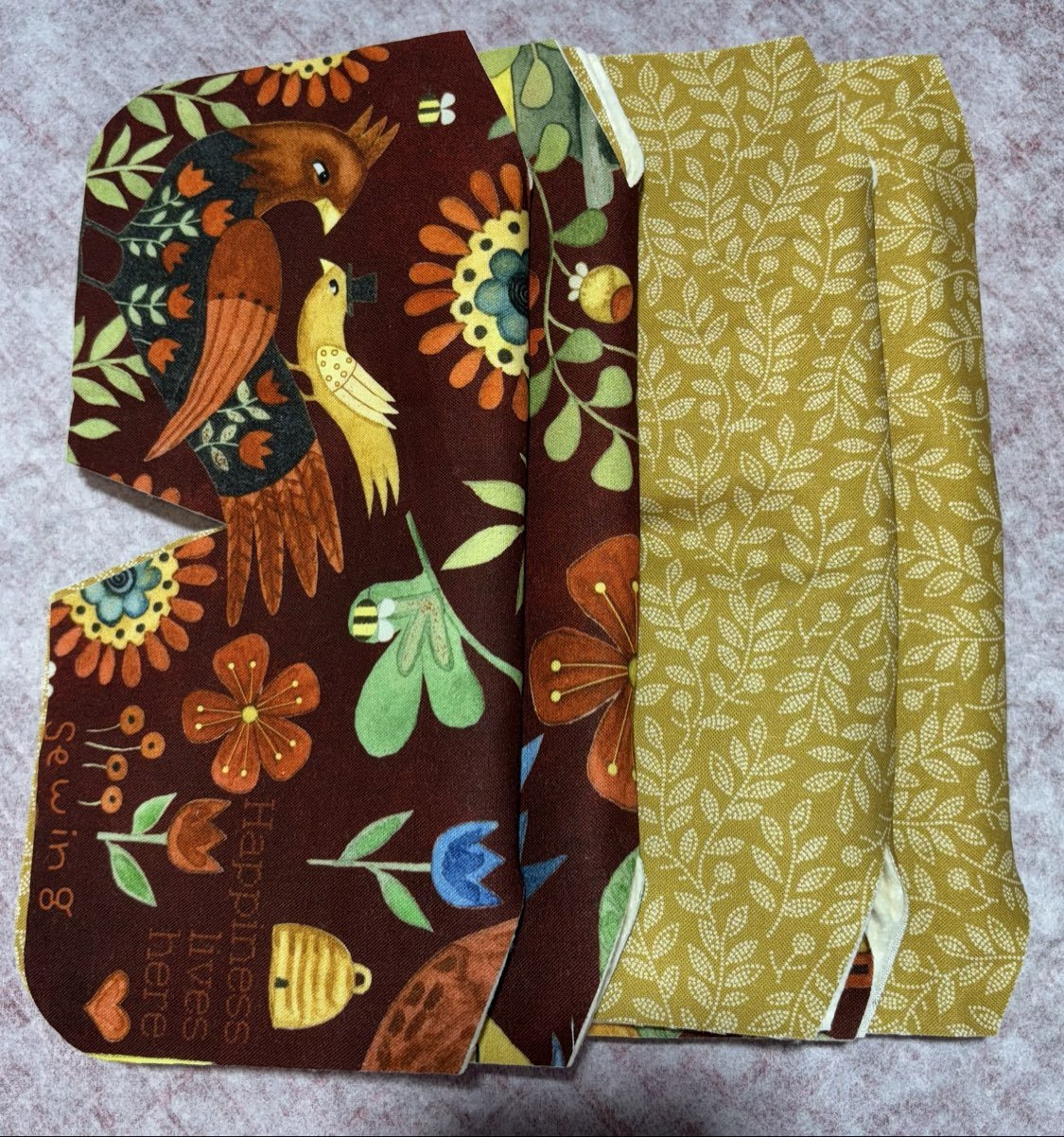 Warning: All fabrics, thread and batting should be 100% cotton if cozy will be used in a microwave. Using material with other fibers can cause a fire in your microwave during use. Check labels carefully. There are specific brands of batting designed for this use also.