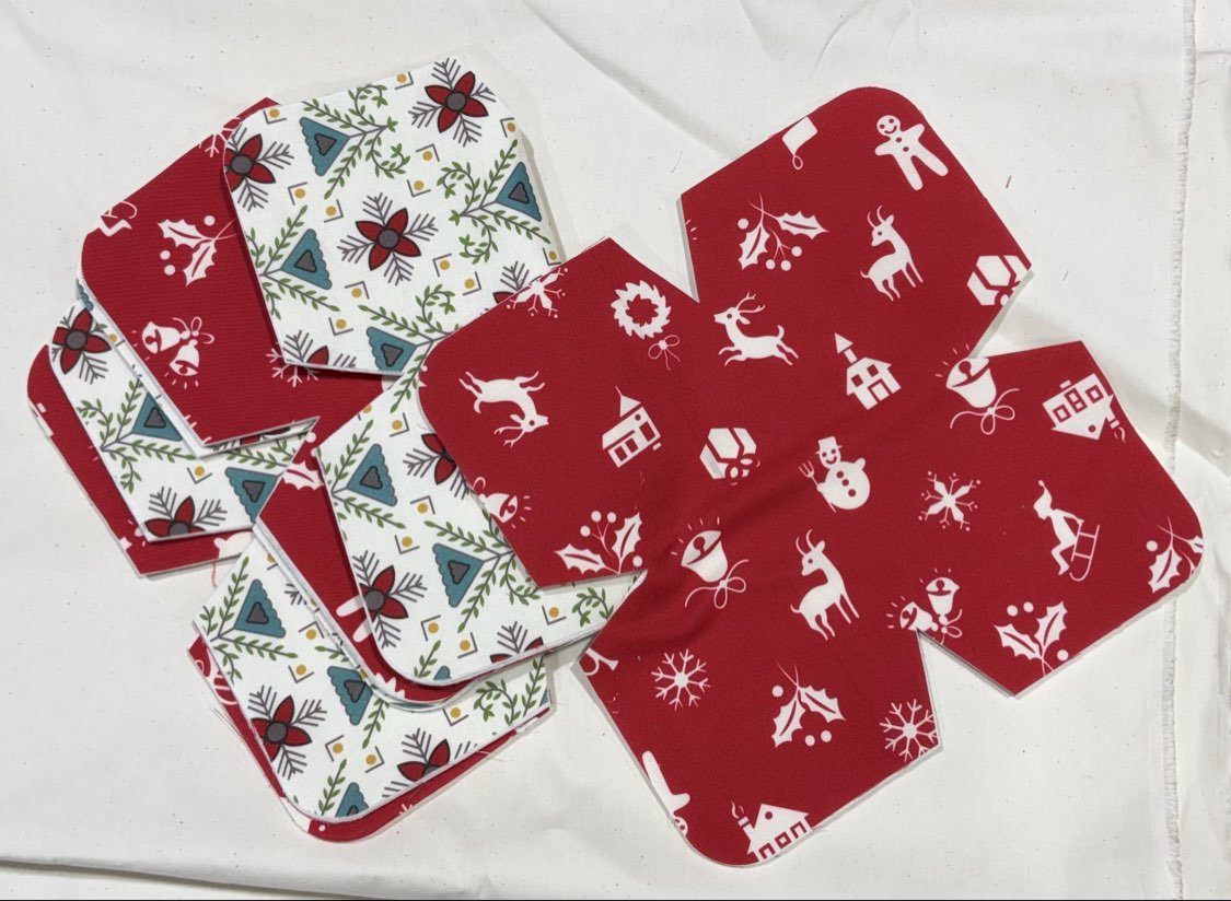 ⢠Enough fabric & batting to make 4 double-sided bowl cozies