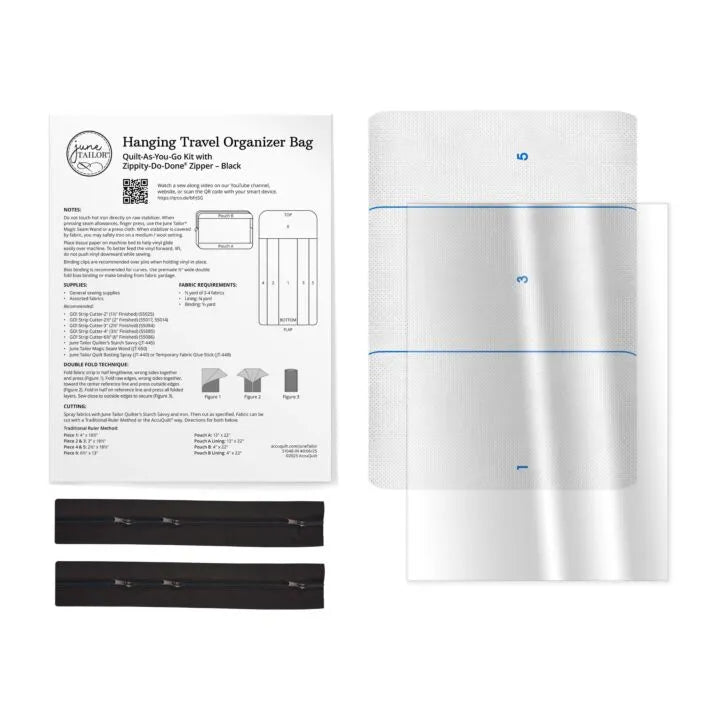 Get ready to vacation in style by making this darling and useful hanging bag. This Quilt-As-You-Go project kit includes the printed stabilizer, clear vinyl and Zippity-Do-Done Zippers - just add fabric! You're sure to makine more than ine, using theem for gifts and organizing a variety of things, even sewing supplies!